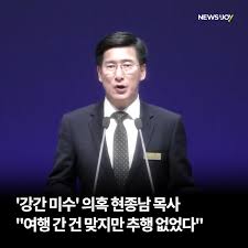 현 목사는 처음에는 뉴스앤조이 기자에게 기사를 내려달라고 읍소했습니다. 그는 “사실은 (A씨) 맞다. 맞는데 여행만 갔다 온 것이다. 제보자가 누군지도 안다”며 “잠깐만 내려줘라. 장로님들한테 사실이라고 고백하고 사임하겠다”고 자신의 과오를 인정하는 태도를 보였습니다. 그러나 며칠 뒤 그는 태도를 완전히 바꾸고 ‘딸 친구 성추행’을 부인하기로 했습니다. 현 목사는 ‘사울의 회개’를 주제로 설교하며, 자신이 새로운 사람이 되었고 죄를 용서받았다고 주장했습니다.